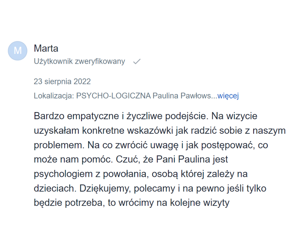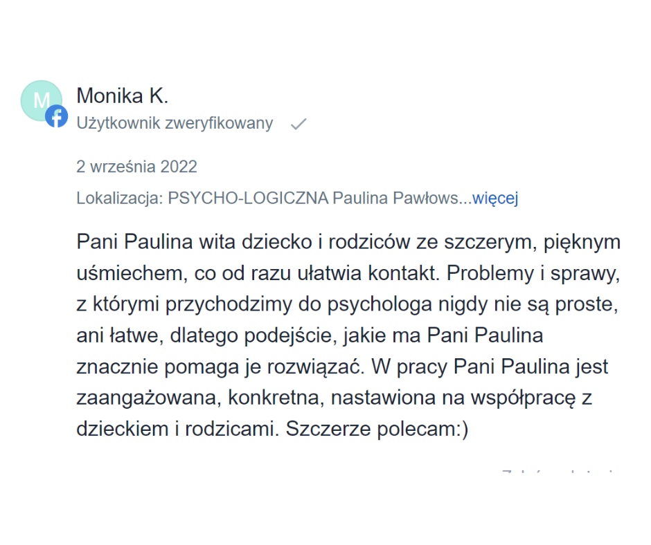Z konsultacji warto skorzystać zawsze wtedy, kiedy niepokoi Cię zachowanie dziecka, nie rozumiesz go lub zadajesz sobie pytanie "Czy to normalne?". Podczas konsultacji wspólnie staramy się znaleźć przyczyny tych zachowań, a także opracowujemy plan działania, dzięki którym będzie Wam łatwiej poradzić sobie w trudnych sytuacjach.