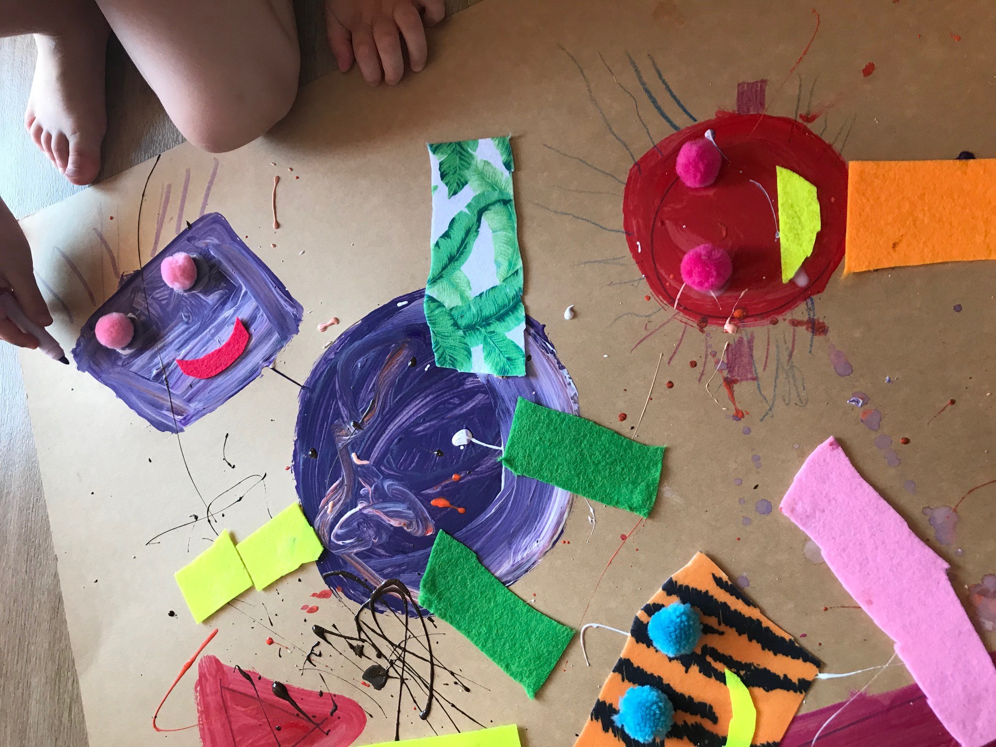 Od czego zacząć? Najpierw rysujemy mazakiem kształty (kółka, trójkąty i kwadraty), a następnie prosimy dziecko, aby farbami zamalowało ich środki.