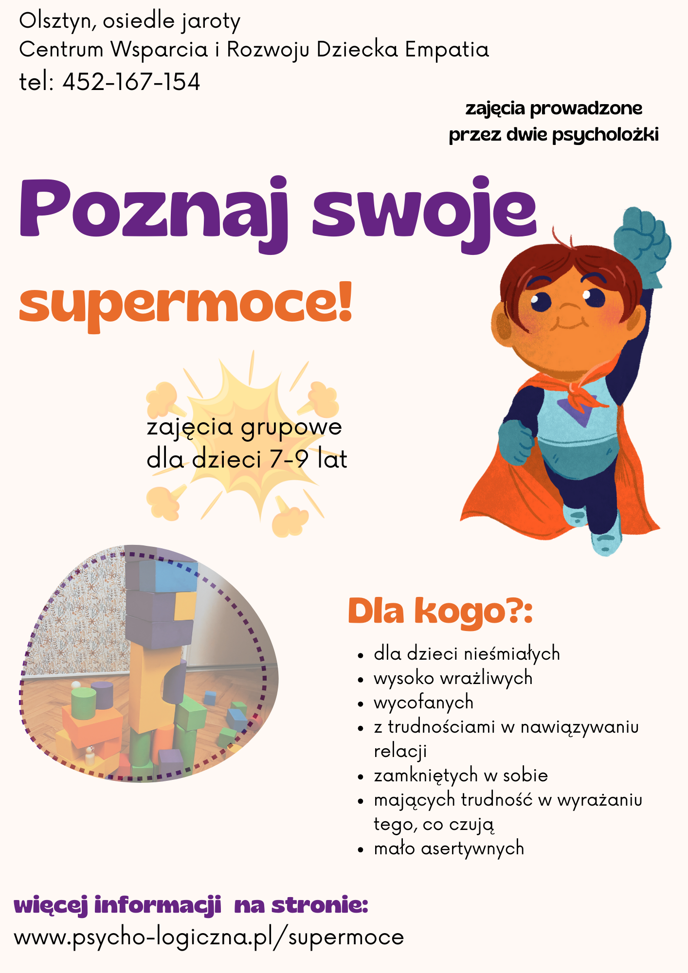 Terapia grupowa dla dzieci w wieku 7-9 lat, podczas których trenujemy odwagę, stajemy się ekspertami w temacie emocji, wzmacniamy wiarę we własne możliwości, uczymy się współpracy i budujemy poczucie własnej wartości.