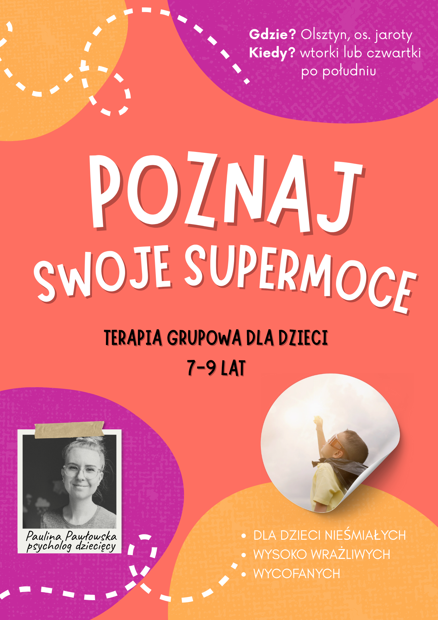 Nazywam się Paulina Pawłowska i jestem psycholożką. Pracowałam w jednej z gdańskich poradni psychologiczno-pedagogicznych, żłobku, kilku przedszkolach, szkole podstawowej oraz liceum. Prowadziłam grupowe warsztaty dla dzieci i młodzieży, m.in. trening umiejętności społecznych oraz grupę wsparcia. Pracuję w zawodzie od 2019 roku, a od 4 lat prowadzę również szkolenia dla specjalistów pracujących z dziećmi oraz tworzę materiały wspierające rozwój dzieci. Obecnie udzielam konsultacji dla rodziców oraz prowadzę terapię psychologiczną dzieci i młodzieży w gabinecie w Olsztynie. Współpracuję także z Przedszkolem Dwujęzyczne Dzieci, Przedszkolem Tempoo oraz Ośrodkiem TROP w Olsztynie. Możecie mnie znać z Instagrama @psychologiczna_pl